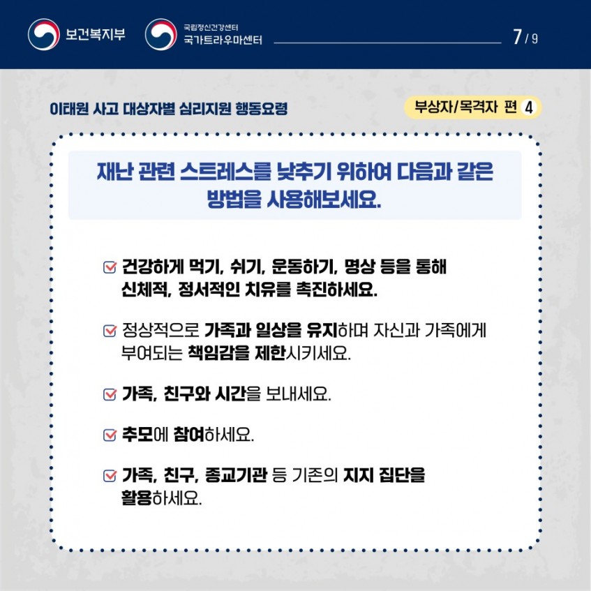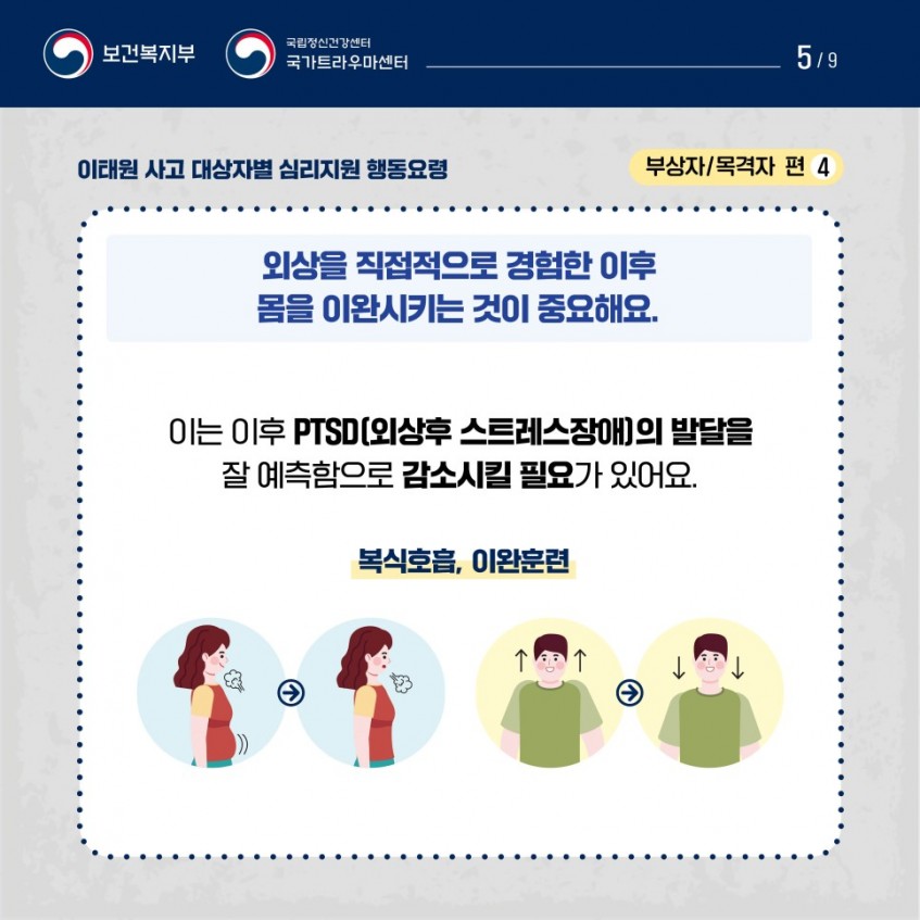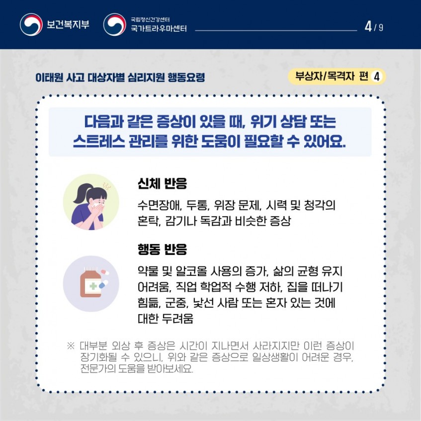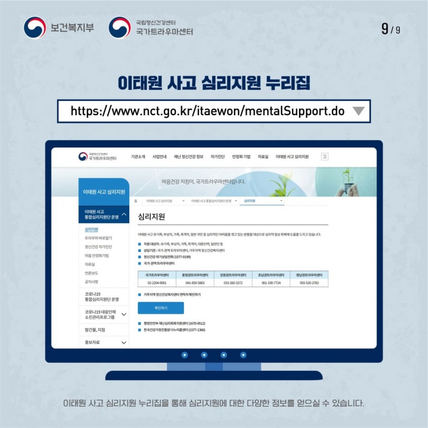 국가트라우마센터 이태원 사고 심리지원 누리집을 통해