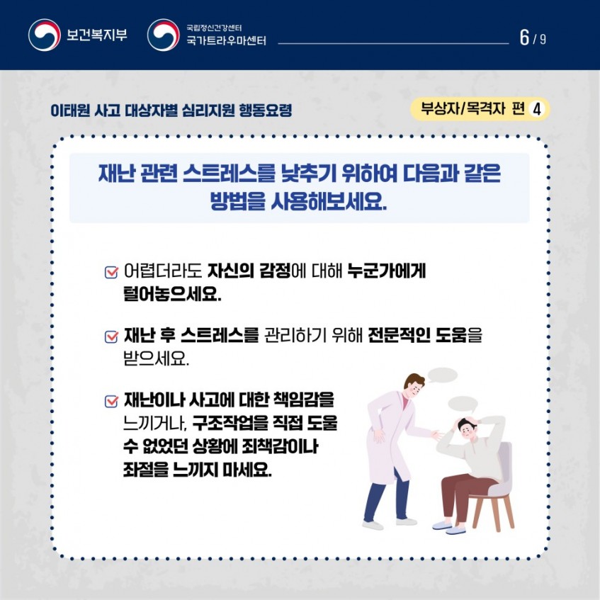 재난사고로 인해 마음의 어려움을 겪는 분들께서는